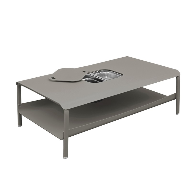 Indissociable du fauteuil bas, la table basse grand format galet offre une belle superficie de partage pour vos espaces apéritifs.